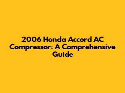 Understanding Your 2006 Honda Accord AC Compressor