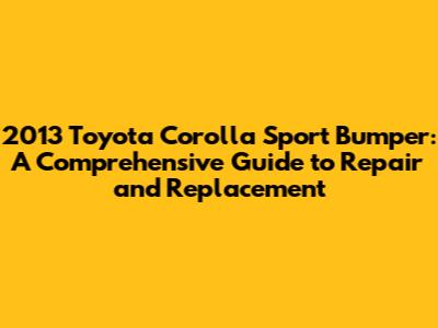 2013 Toyota Corolla Sport Bumper: Repair & Replacement Guide