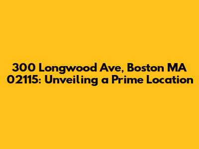 Hey everyone! Let's dive into the details of 300 Longwood Ave, Boston MA 02115. This address isn't just a string of numbers and letters; it's a gateway to a vibrant area of Boston, offering a unique blend of culture, healthcare, and residential charm. We're going to break down what makes this location so special, exploring its surroundings, amenities, and what it truly has to offer. So, buckle up, and let's get started on this exciting journey into the heart of Boston!