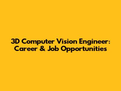 3D Computer Vision Engineer: Career & Job Opportunities