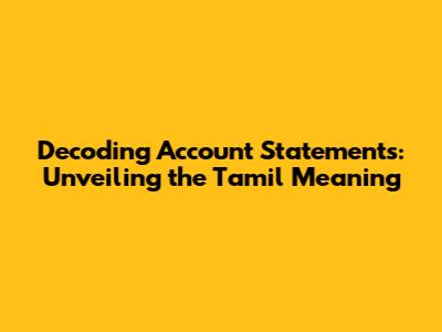 Account Statement Explained: Decoding The Tamil Meaning