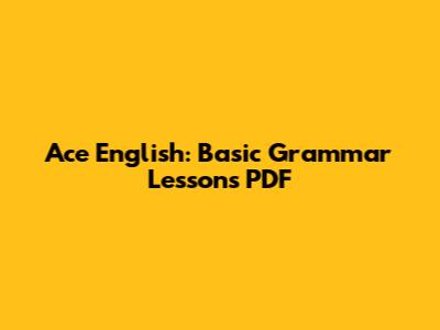 Ace English: Basic Grammar Lessons PDF