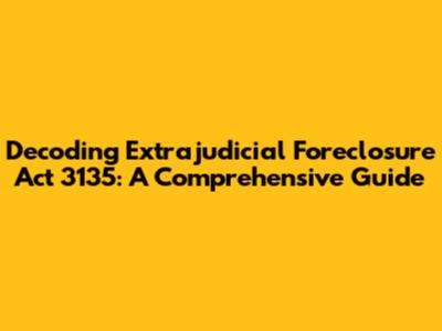 Hey everyone, let's dive into the nitty-gritty of the Extrajudicial Foreclosure Act, also known as Act 3135. Understanding this piece of legislation is super important if you're a homeowner, a borrower, or even just someone curious about property law. This act outlines the process that lenders, like banks or financial institutions, can use to take back a property when a borrower fails to keep up with their mortgage payments. We'll break down the key parts, explain how it works, and touch on some essential things you should know. So, grab a coffee, and let's get started!