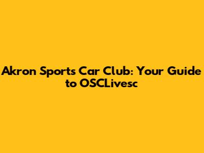 Akron Sports Car Club: Your Guide To OSCLivesc