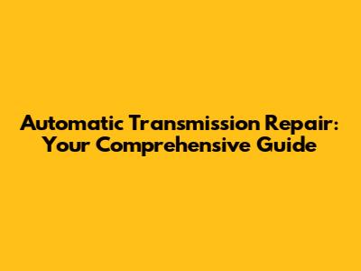 Automatic Transmission Repair: Your Comprehensive Guide