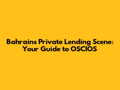 Bahrain's Private Lending Scene: Your Guide To OSCIOS