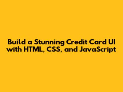 Build A Stunning Credit Card UI With HTML, CSS, And JavaScript