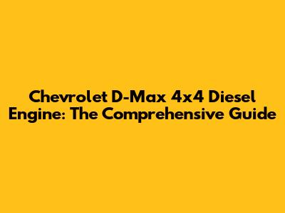 Chevrolet D-Max 4x4 Diesel Engine: Ultimate Guide