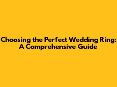 Choosing The Perfect Wedding Ring: A Comprehensive Guide