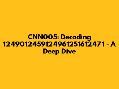 When trying to decode 1249012459124961251612471 cnn005, several potential interpretations come to mind. One likely scenario is that the long numeric string serves as a unique identifier for a specific piece of content within CNN's vast digital library. This content could range from a news article or video clip to an image or audio file. The cnn005 portion likely acts as a prefix or suffix, indicating the source or category of the content. The 005 might denote a specific department, project, or content type within CNN. For instance, it could represent a particular series, a special investigation, or a technological platform used to deliver the content. Another possibility is that the numeric string encodes metadata about the content, such as its creation date, geographical location, relevant keywords, or author information. Large media organizations often use sophisticated coding systems to embed contextual data within their content identifiers, enabling efficient searching, filtering, and analysis. The specific structure of the numeric string could reflect a hierarchical organization, where different segments represent different aspects of the content. For example, the first few digits might indicate the year and month of creation, while subsequent digits could denote the topic, region, or journalist involved. It's also conceivable that the identifier is used for internal tracking and management purposes, helping CNN to monitor the content's usage, distribution, and performance across various platforms. This information could be valuable for optimizing content strategy, measuring audience engagement, and ensuring compliance with copyright regulations. Therefore, while we can't definitively determine the meaning of the identifier without access to CNN's internal systems, it's highly likely that it plays a crucial role in organizing, managing, and tracking their extensive content library.