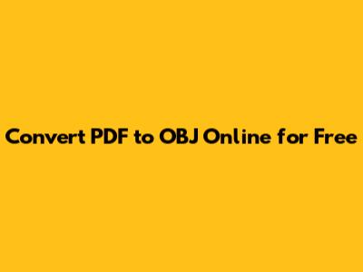 Convert PDF To OBJ Online For Free