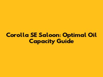 Corolla SE Saloon: Optimal Oil Capacity Guide