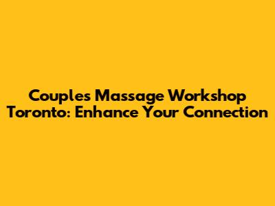 Hey everyone! Are you looking to spice things up and connect with your partner on a deeper level? A couples massage workshop in Toronto might just be the perfect answer! These workshops offer a fantastic opportunity to learn new skills, relax together, and strengthen your bond. In this article, we'll explore everything you need to know about couples massage workshops in Toronto, including what to expect, the benefits, and some top picks to get you started.
