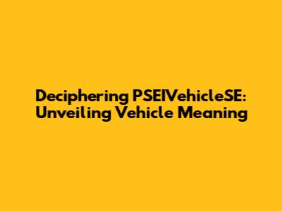 Deciphering PSEIVehicleSE: Unveiling Vehicle Meaning