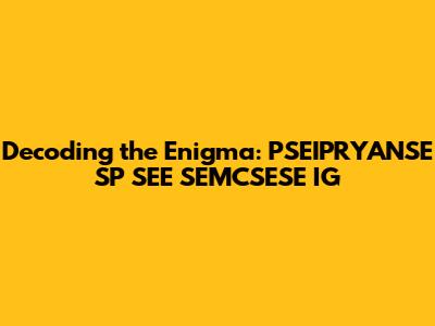 Decoding Acronyms: PSEIPRYANSE SP SEE SEMCSESE IG