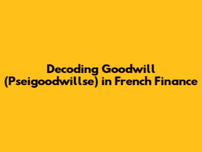 Decoding Goodwill (Pseigoodwillse) In French Finance