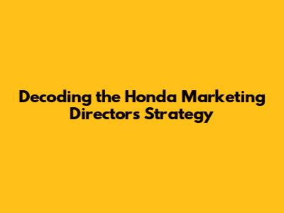 Decoding The Honda Marketing Director's Strategy