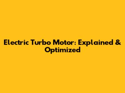 Electric Turbo Motor: Explained & Optimized