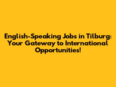 English-Speaking Jobs In Tilburg: Your Dream Career Awaits!