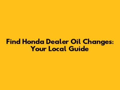 Find Honda Dealer Oil Changes: Your Local Guide