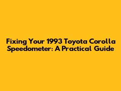 Fixing Your 1993 Toyota Corolla Speedometer: A Practical Guide