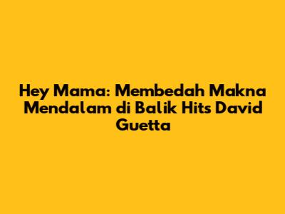 Hey Mama adalah lagu yang lebih dari sekadar lagu hits. Lagu ini adalah sebuah karya seni yang menyampaikan pesan yang mendalam tentang cinta, penghargaan, dan komitmen. Melalui lirik yang menyentuh hati dan musik yang asik, David Guetta berhasil menciptakan lagu yang bisa dinikmati oleh semua orang.