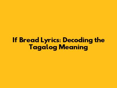Hey there, music lovers! Ever found yourself vibing to a song and wondering, "What's the real deal with these lyrics?" Well, if you're like me, you've probably stumbled upon the song "If Bread," and if you're curious about its Tagalog meaning, then you've come to the right place. We're going to dive headfirst into this song, breaking down the lyrics, and exploring what they truly mean in Tagalog. So, grab your favorite snack, get comfy, and let's get started!