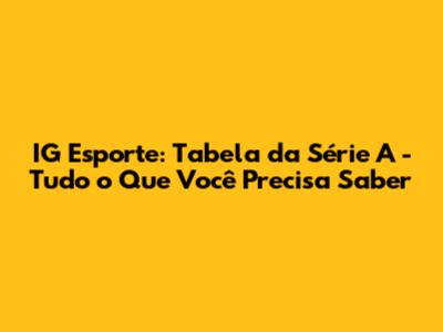 O Que Torna a Tabela da Série A do IG Esporte Essencial?