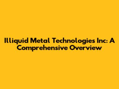Hey guys! Ever heard of Illiquid Metal Technologies Inc? If not, buckle up because we're about to dive into everything you need to know about this fascinating company. From their innovative technologies to their impact on various industries, we'll cover it all. Let's get started!