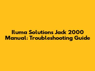 Iluma Solutions Jack 2000 Manual: Troubleshooting Guide