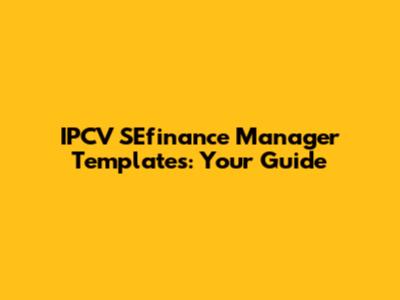 IPCV SEfinance Manager Templates: Your Guide