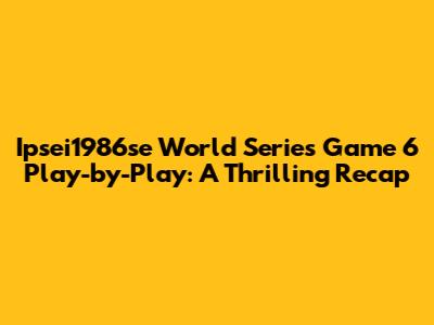 Ipsei1986se World Series Game 6 Play-by-Play: A Thrilling Recap