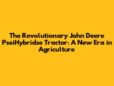 The Revolutionary John Deere PseiHybridse Tractor: A New Era in Agriculture