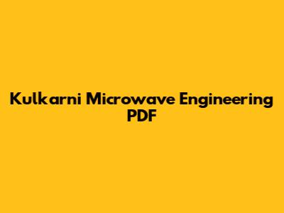 Kulkarni Microwave Engineering PDF: Download & Resources