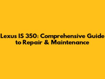 Lexus IS 350: Comprehensive Guide To Repair & Maintenance