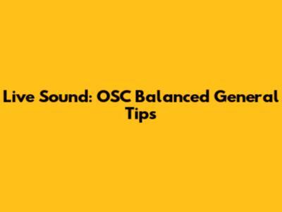 Live Sound: OSC Balanced General Tips
