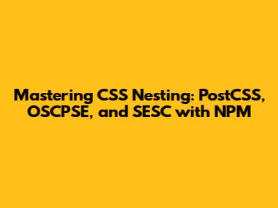 Mastering CSS Nesting: PostCSS, OSCPSE, And SESC With NPM