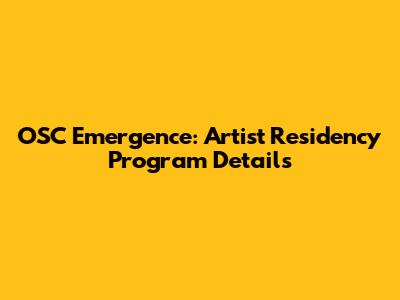 OSC Emergence: Artist Residency Program Details