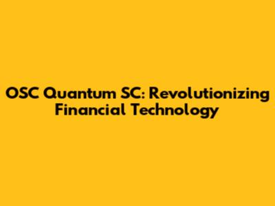 OSC Quantum SC: Revolutionizing Financial Technology