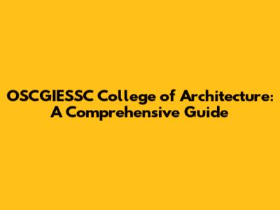 OSCGIESSC College Of Architecture: A Comprehensive Guide