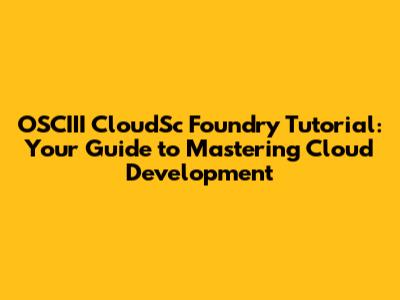 Hey everyone! πŸ‘‹ Ever wanted to dive into the world of cloud development? Well, you're in the right place! Today, we're going to embark on a journey into OSCIII CloudSc Foundry. Don't worry if you're new to this – we'll break it down step by step, making it easy to understand and follow along. This tutorial is designed for anyone who wants to learn the ropes of cloud development, regardless of their experience level. So, grab your favorite drink, sit back, and let's get started!