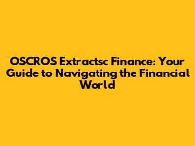 OSCROS Extractsc Finance: Your Guide To The Financial World