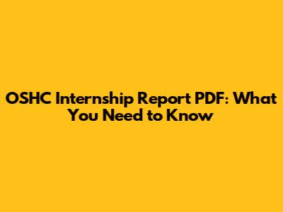 OSHC Internship Report PDF: What You Need To Know