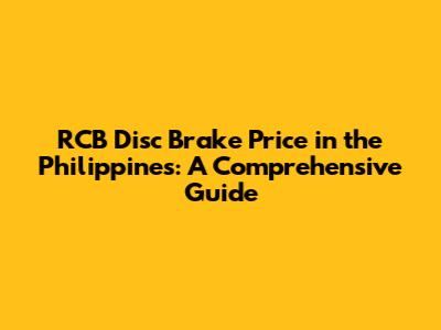 RCB Disc Brake Price In The Philippines: A Comprehensive Guide