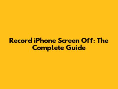 Record IPhone Screen Off: The Complete Guide
