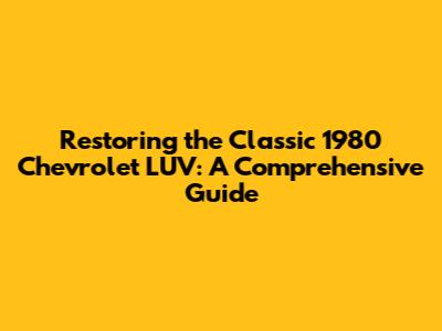 Restoring The Classic 1980 Chevrolet LUV: A Comprehensive Guide