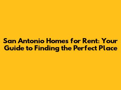 San Antonio Homes For Rent: Your Guide To Finding The Perfect Place