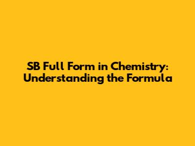 SB Full Form In Chemistry: Understanding The Formula