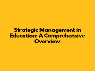 Strategic Management In Education: A Comprehensive Overview