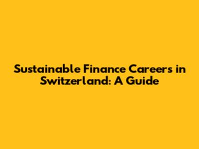 Sustainable Finance Careers In Switzerland: A Guide